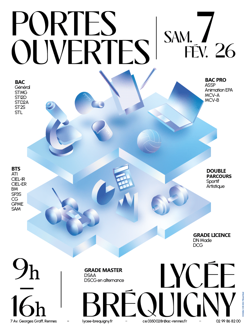 Lors de cette Journée Portes Ouvertes du lycée Bréquigny à Rennes, vous plongerez dans nos projets pédagogiques, nos partenariats et les créations, recherches et productions issues de l’année en cours.